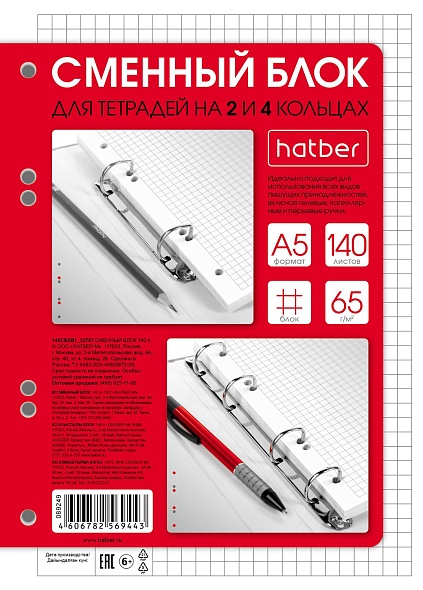 | 925844 | Блок сменный для тетради на кольцах 140 л. А5 (Хатбер) | 140СБ5В1_32787 | 0.35 | 26 |