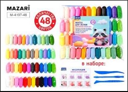 | 926401 | Масса для лепки 48 цв. по 13 гр.+3 стека в п/э Mazari | М-4197-48 | 0.65 | 32 |