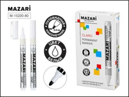 | 927931 | Маркер перм. Mazari "Claro" 1-2 мм бел. в к/к | М-15220-80 | 0.01 | 12 |