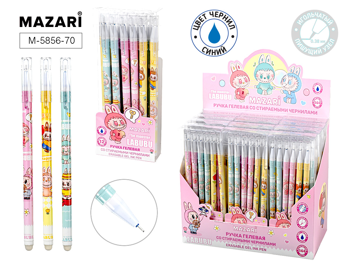 | 930286 | Ручка гел. Mazari "Зубастик" 0,38 мм син. стирающиеся чернила в карт. дисплее | М-5856-70 | 0.01 | 12 |